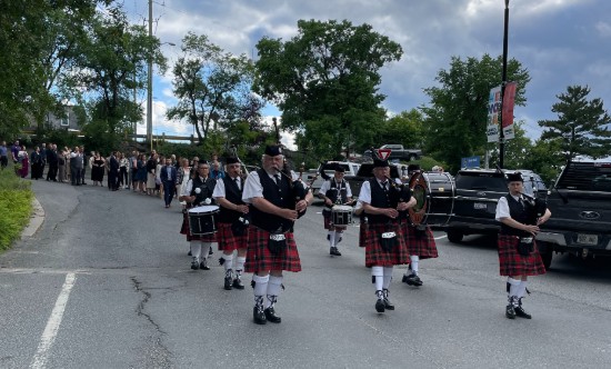 Kenora Scottish Pipes & Drums leading the Beaver Brae Secondary School