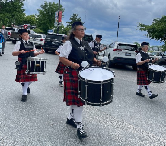 On Monday evening – June 23, 2025, the Beaver Brae Graduation Ceremony took place on the Kenora Harbourfront at the Whitecap Pavilion. The band marched the graduates, the teachers and faculty down Bernier Drive to the Pavilion playing the 4/4 standard Scotland the Brave, Rowan Tree and Wings. After a brief pause, the band then led the teachers and faculty through the Pavillion to the stage playing the standard 2/4 High Road to Gairloch and Mairi’s Wedding. The graduates then proceeded to the stage to the notes of “Pomp and Circumstances”. Thanks to all of the band members who attended – this is one of the highlights of our performance year. Kudos to our new drummers, Melanie, Wyatt and Steve – great job keeping the beat. Thankfully the rain held off.